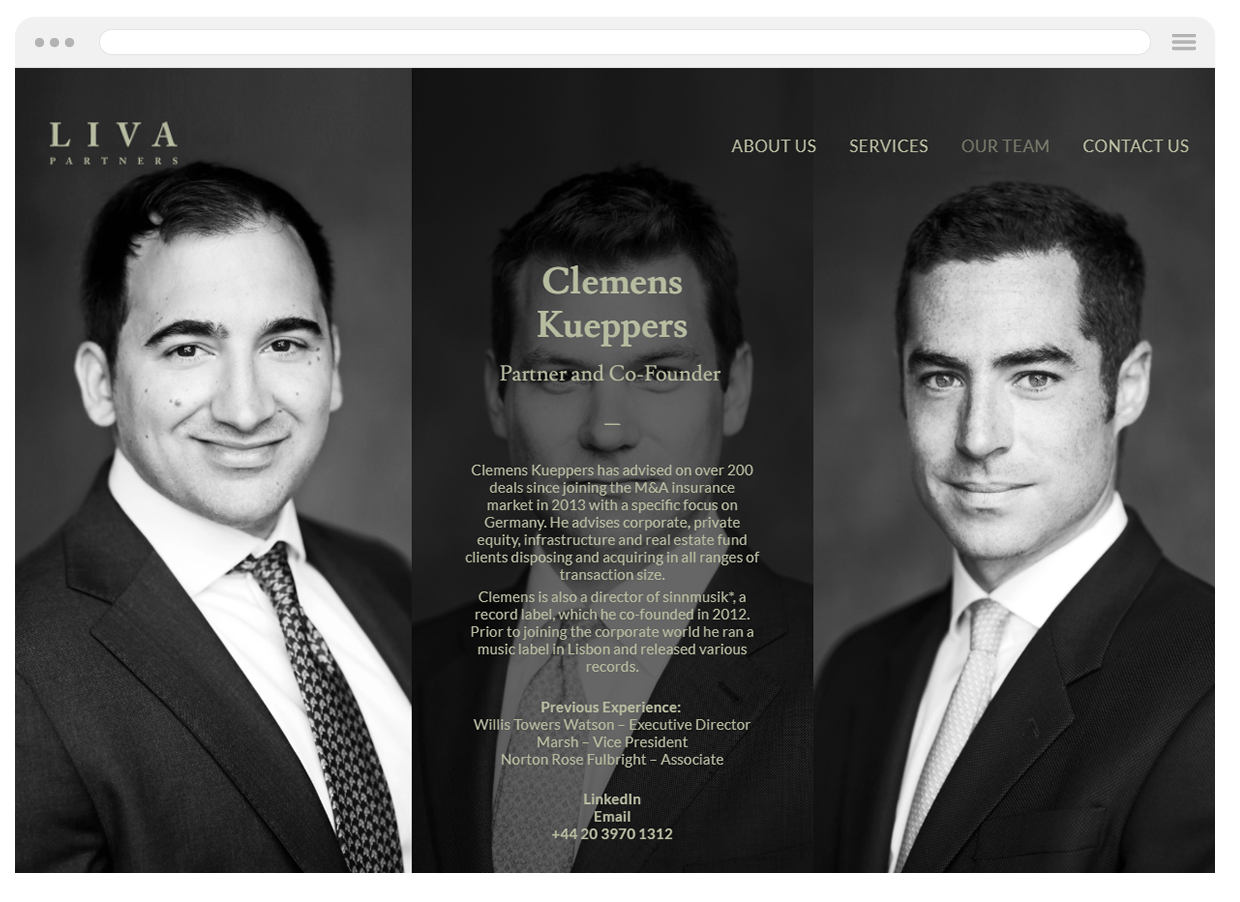 Liva Partners is a boutique M&A Insurance Broker and Risk Advisory firm, founded by Alan Hands, Clemens Kueppers and Tom Hobart in 2018.